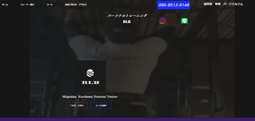 | 2 | パーソナルトレーニングBLR | 草津市北大萱町506-1 | 体験料 3,000円 ボディメイクコース月額会員 4回 月18,000円 |