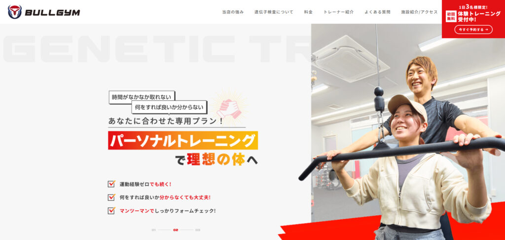 整体・姿勢矯正併設型の多様化 — 整骨院運営のジムが複数あり、トレーニングと整体・姿勢矯正を組み合わせた「痛みなく動ける体づくり」が特徴的です