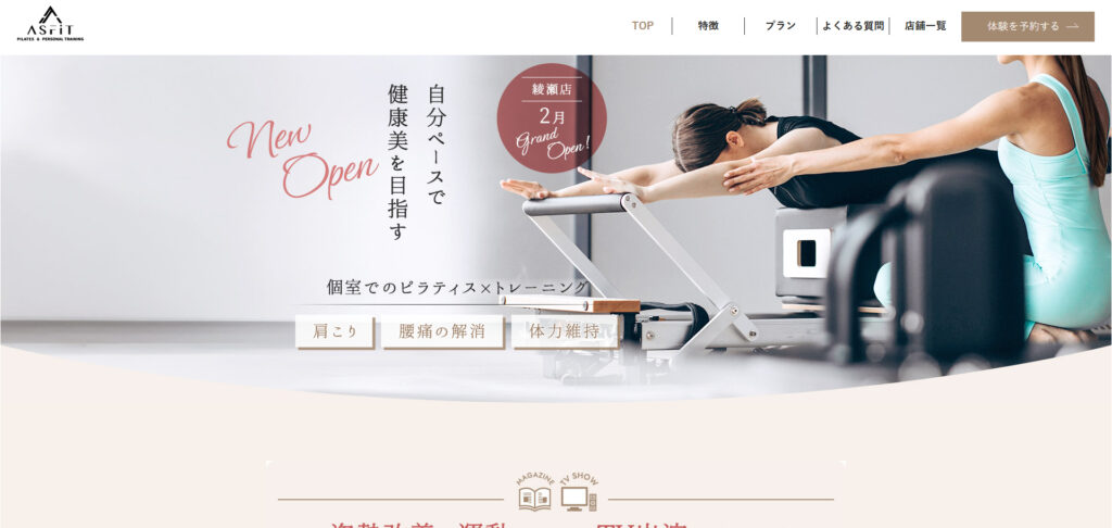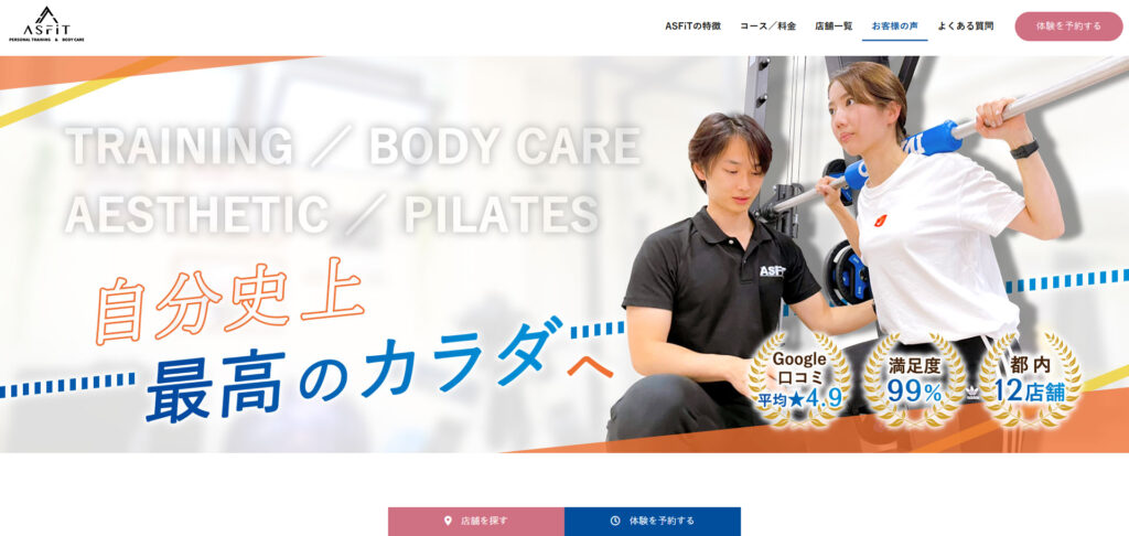 6 | マシンピラティス&パーソナルジム ASFiT お花茶屋北口店 | 葛飾区白鳥2丁目2−10 106 | 体験 2,178 円 月4回×25分 16,000 円 |